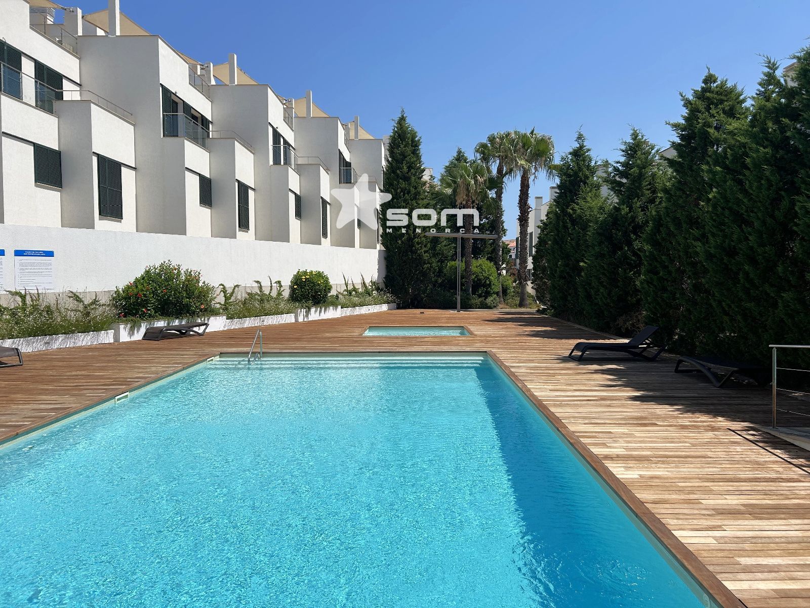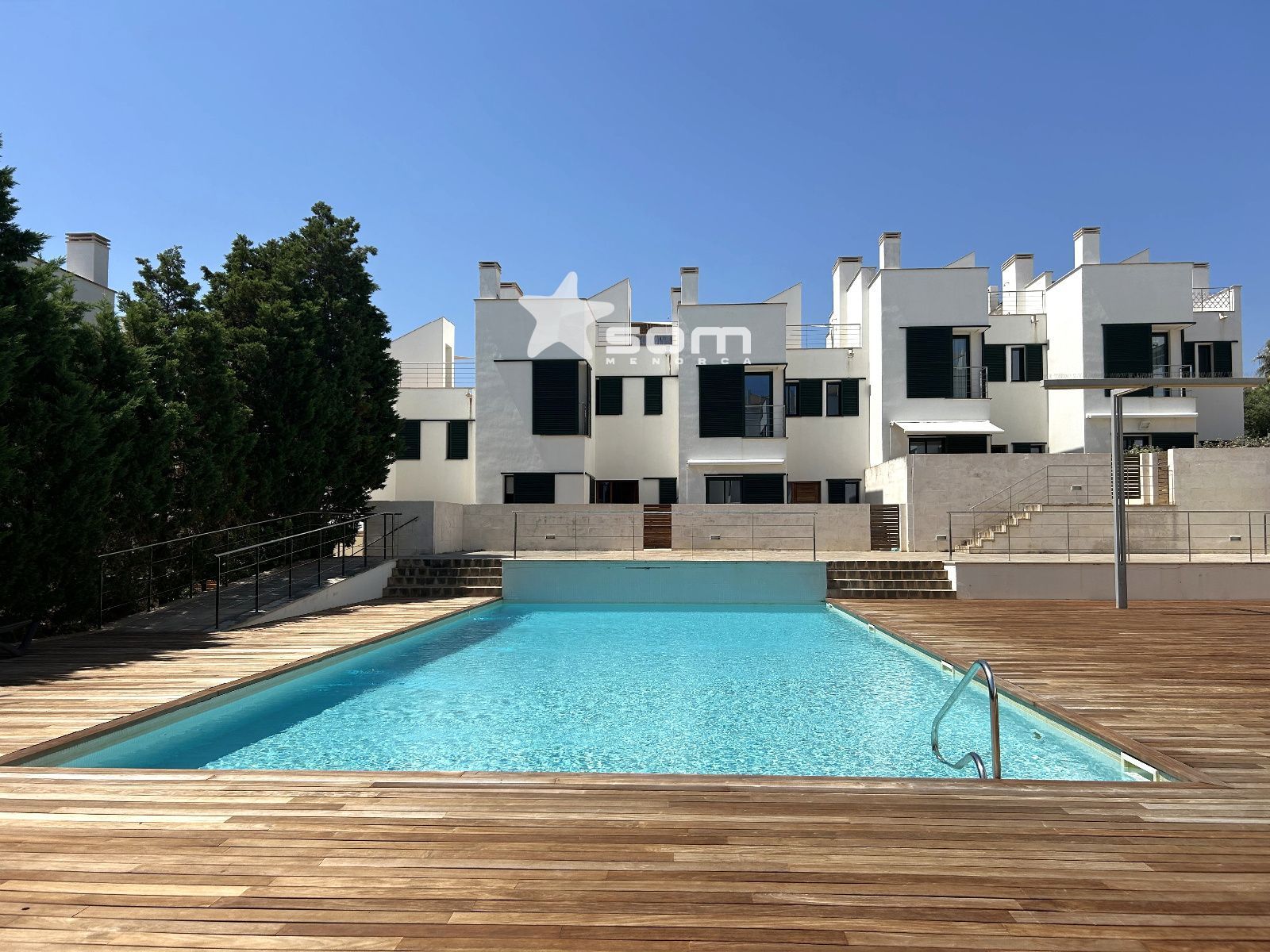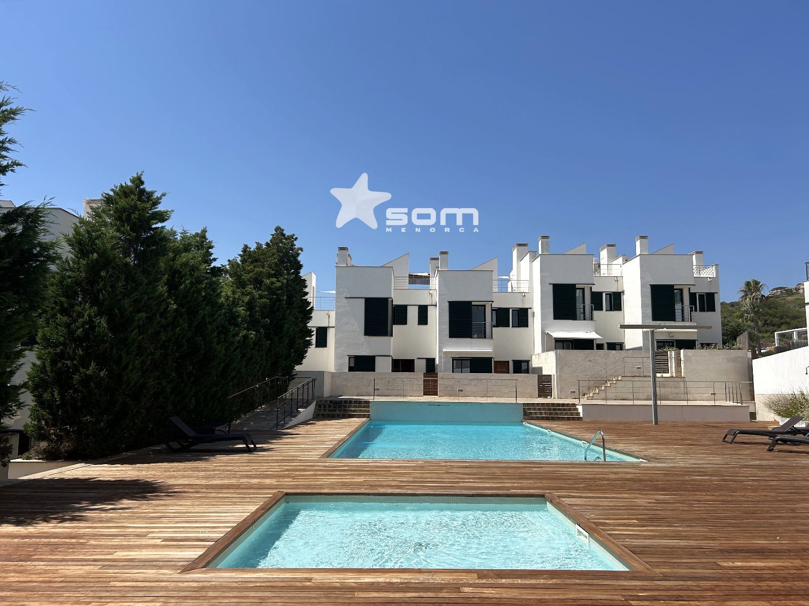 El chalet forma parte de un conjunto residencial muy tranquilo y bien cuidado con zonas ajardinadas, solárium, una gran piscina y piscina infantil. Está situado en el pueblo de Fornells en una localización privilegiada frente al mar, junto al Paseo Marítimo.