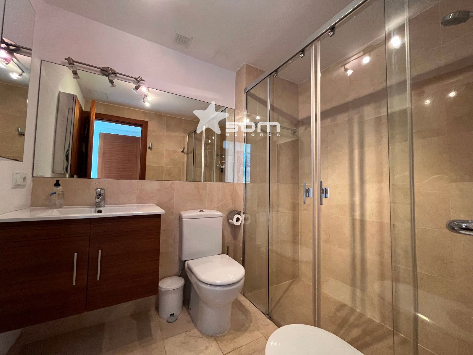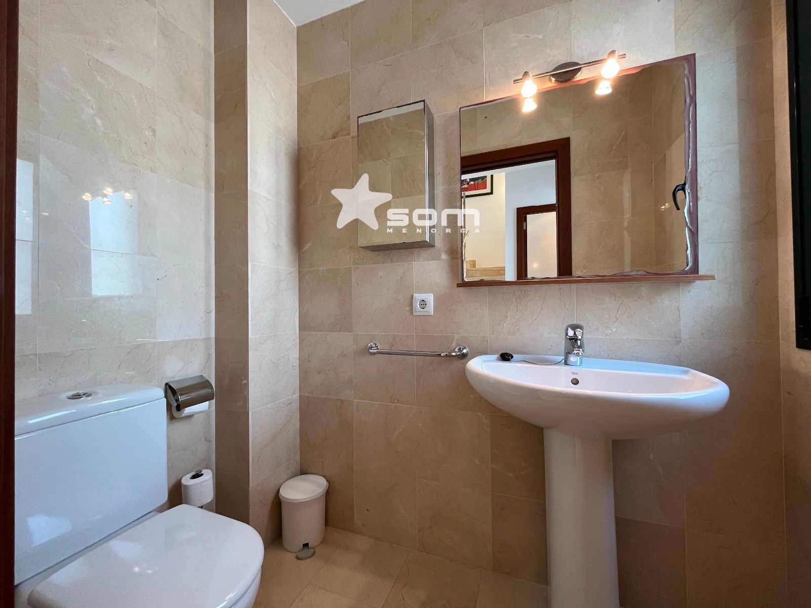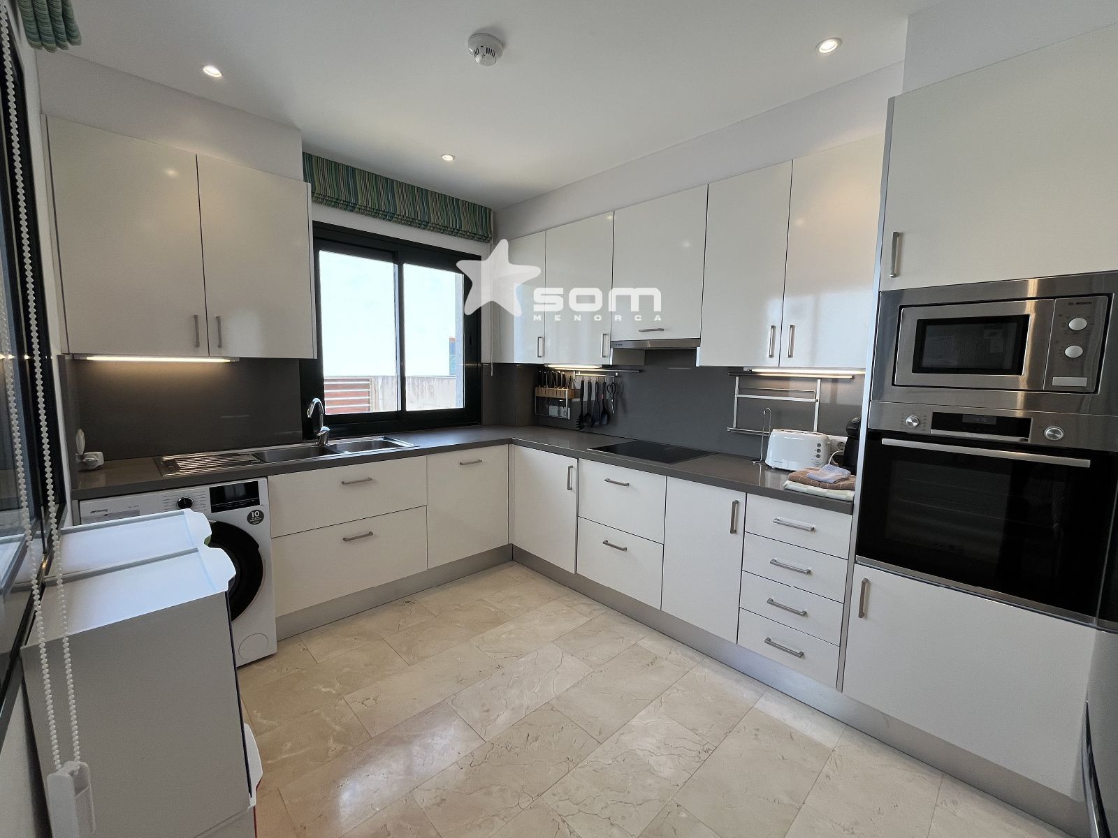 El chalet forma parte de un conjunto residencial muy tranquilo y bien cuidado con zonas ajardinadas, solárium, una gran piscina y piscina infantil. Está situado en el pueblo de Fornells en una localización privilegiada frente al mar, junto al Paseo Marítimo.