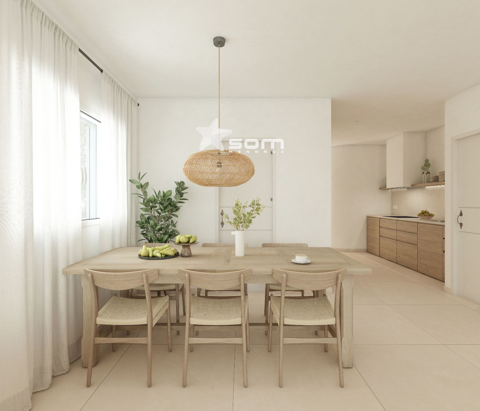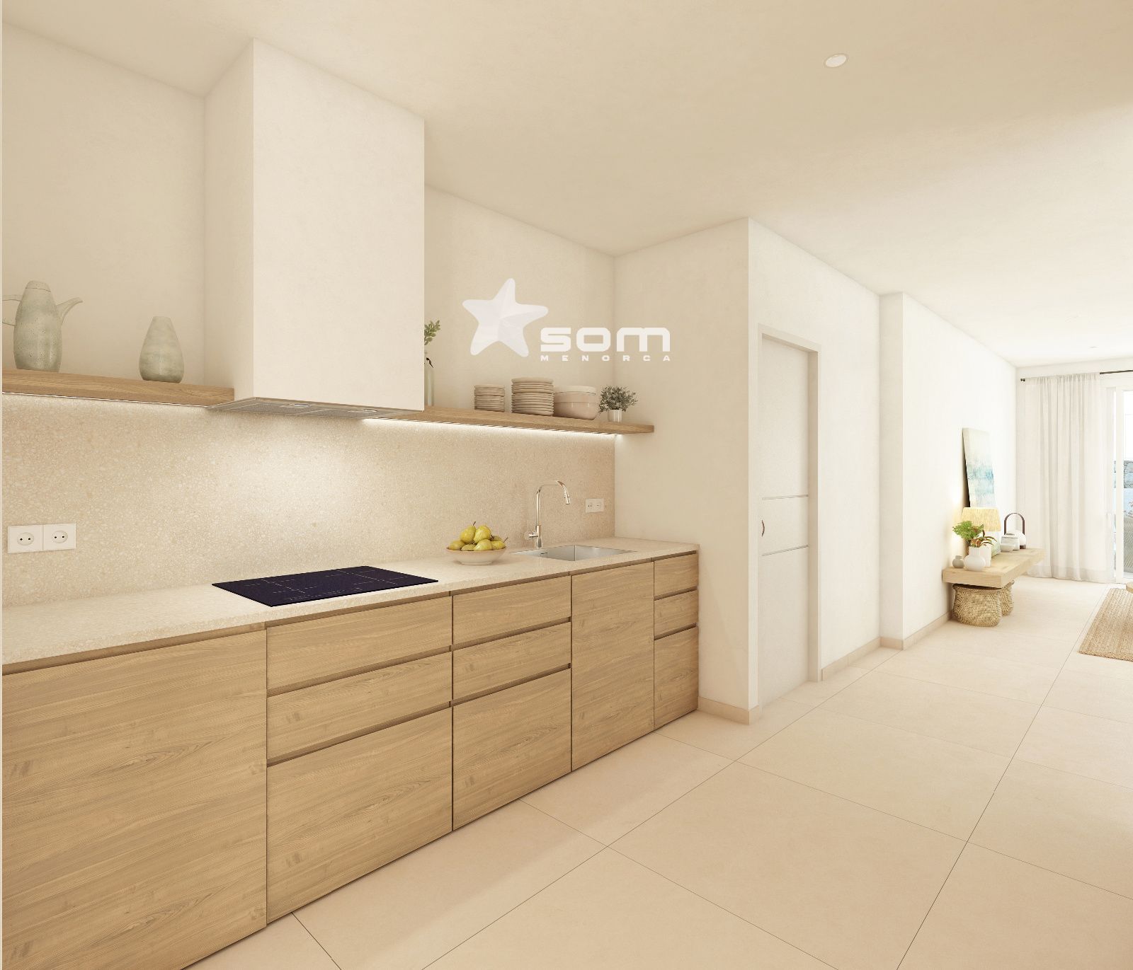 Amplio y luminoso apartamento en planta baja. Consta de un amplio salón comedor con cocina abierta totalmente amueblada y equipada y salida la gran terraza privada parcialmente cubierta, un dormitorio grande y otro pequeño ambos con armarios empotrados y un bañocompleto (uno en-suite). Climatización por aerotermia.