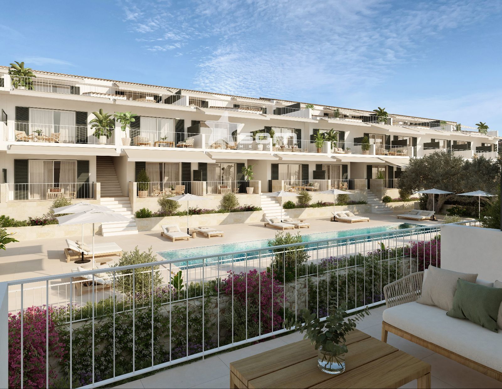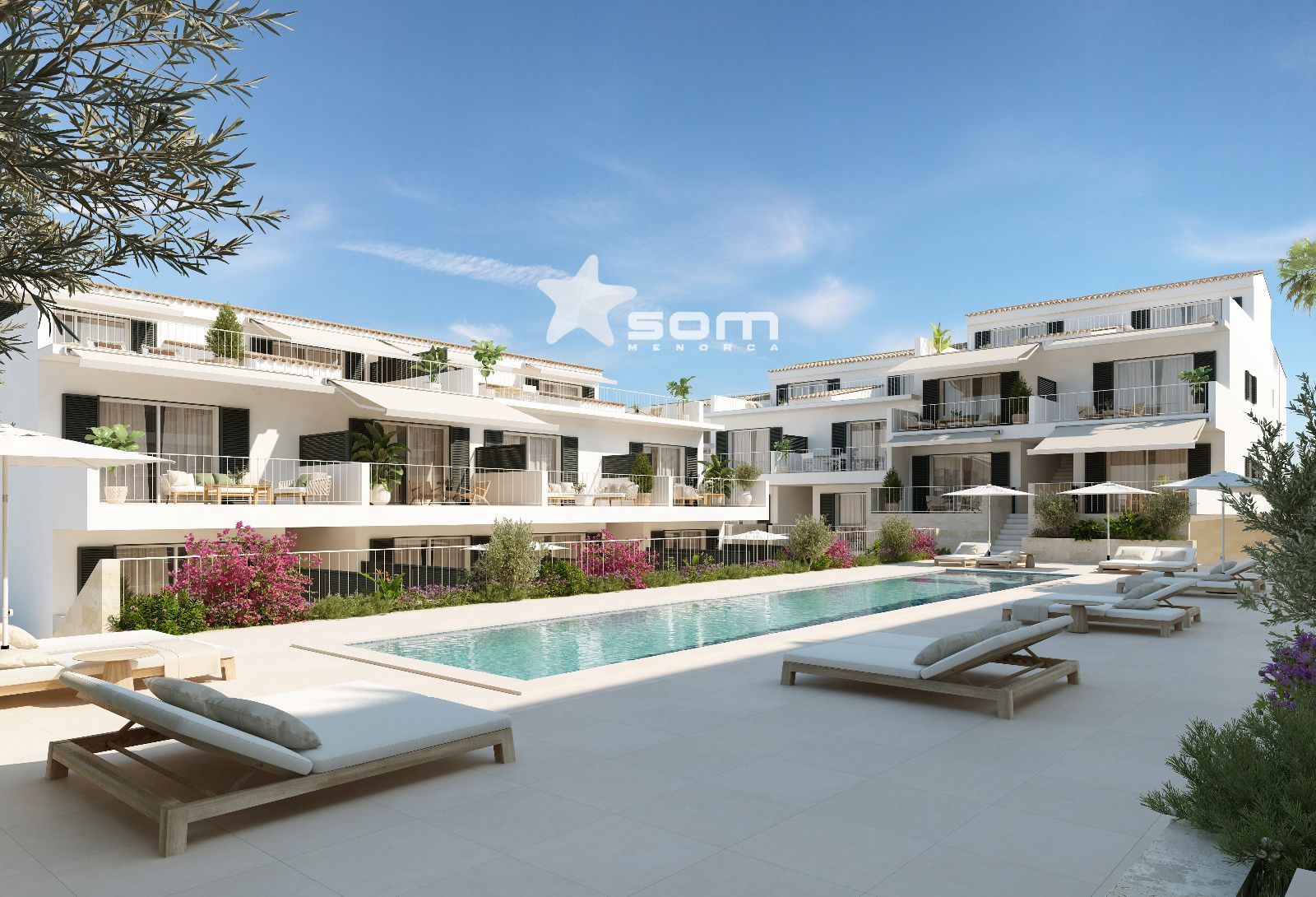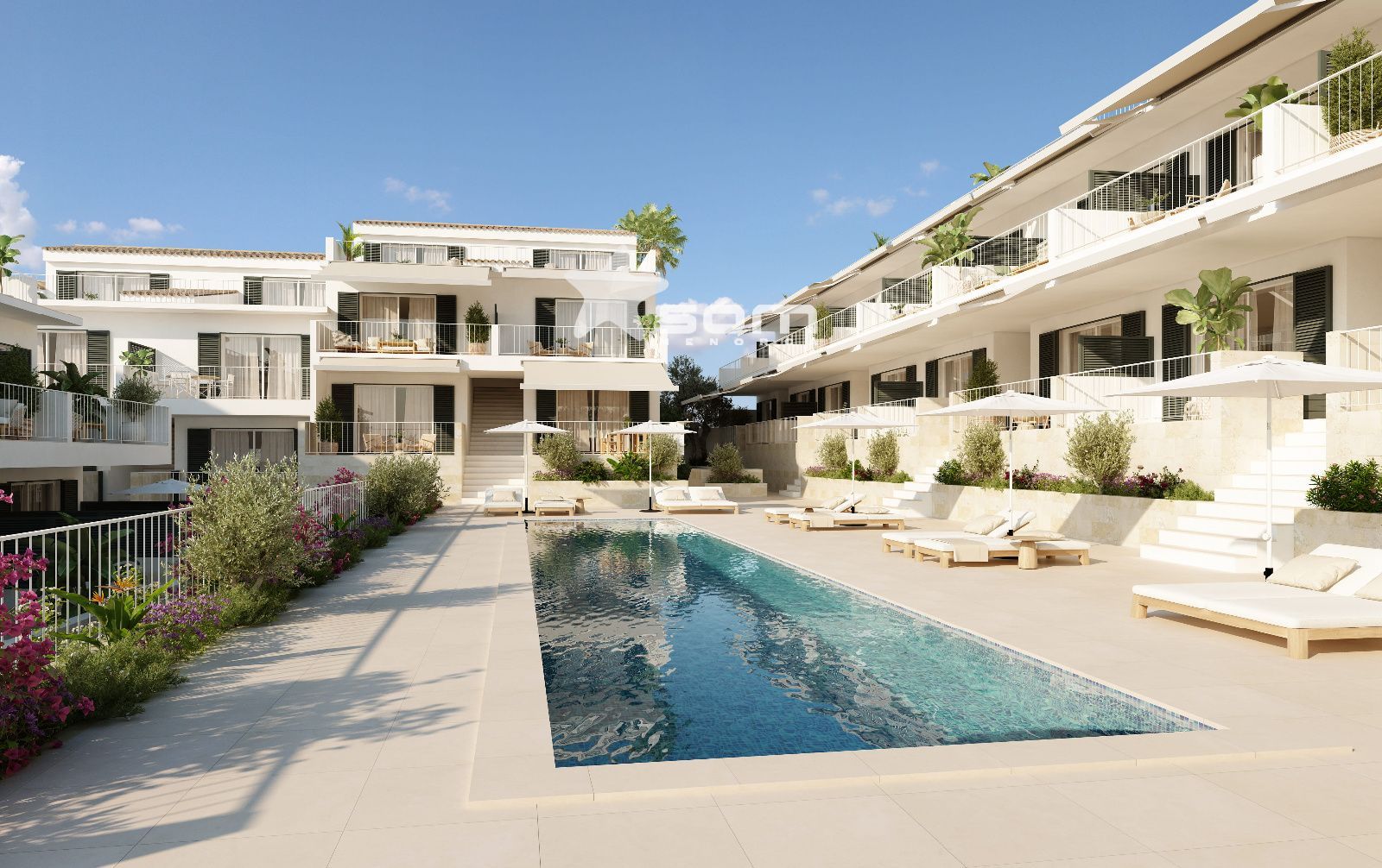 Zonas comunes ajardinadas con piscina y solarium