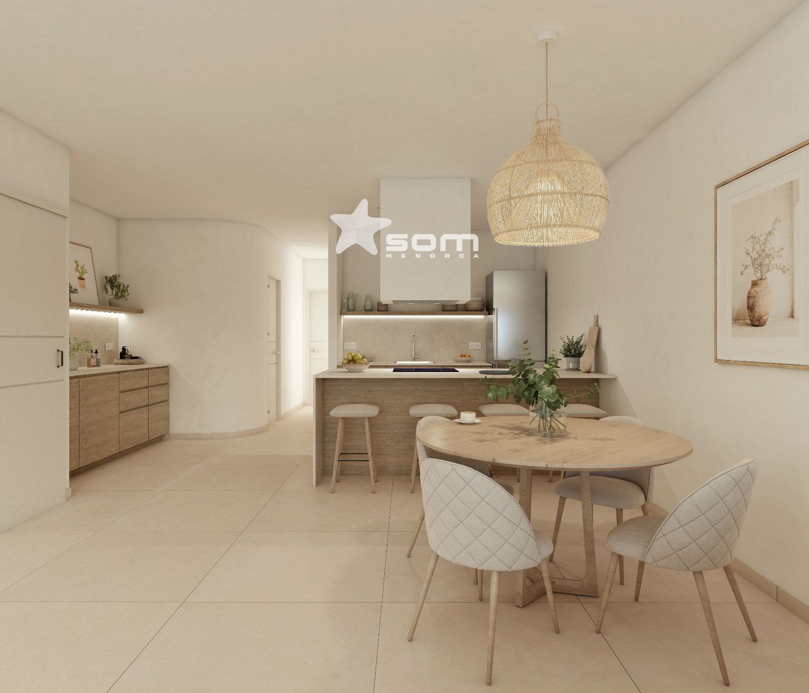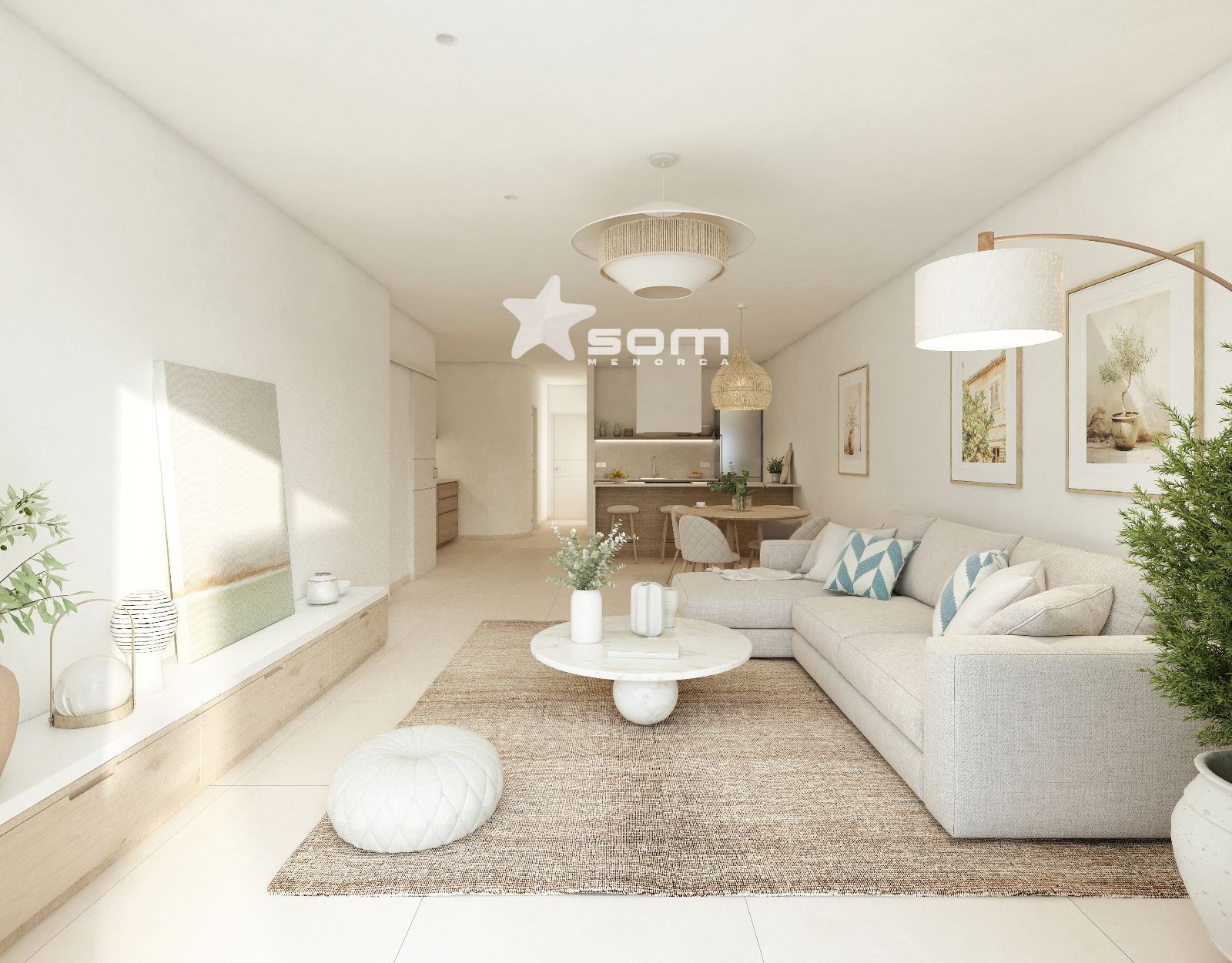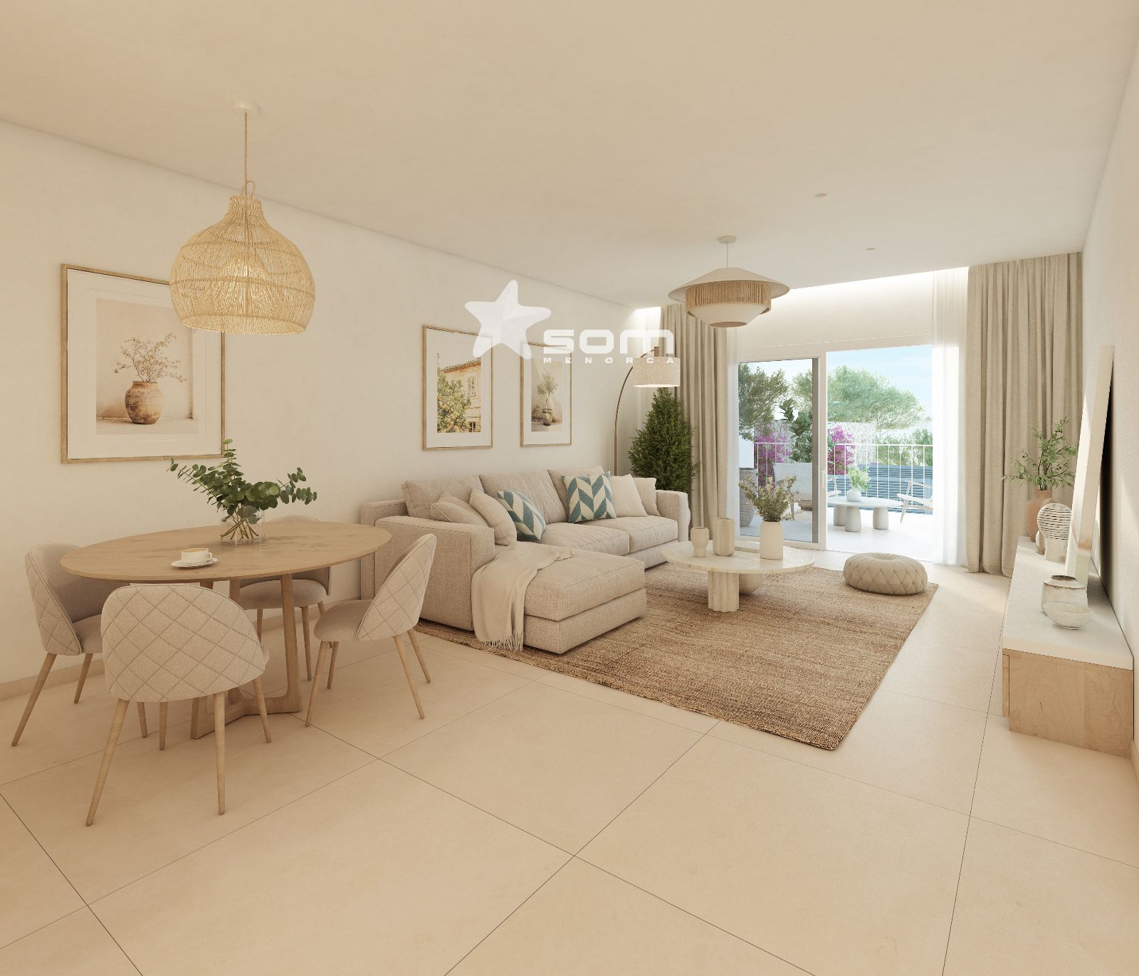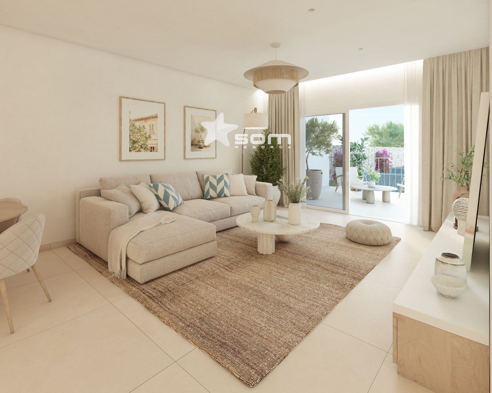 Ampio e luminoso appartamento al piano terra. Si compone di un ampio soggiorno-pranzo con cucina a vista completamente arredata e attrezzata che si apre su un'ampia terrazza privata parzialmente coperta, tre ampie camere da letto con armadi a muro e due bagni completi (uno en-suite). L'aria condizionata è fornita da pompe di calore aerotermiche.