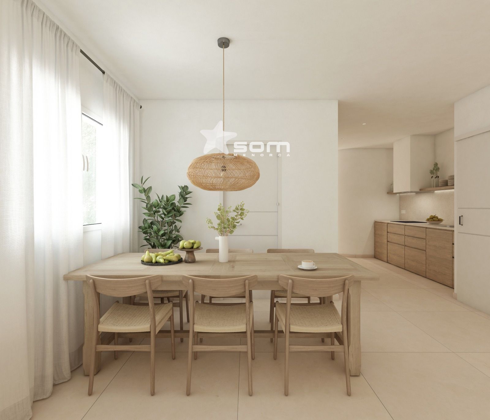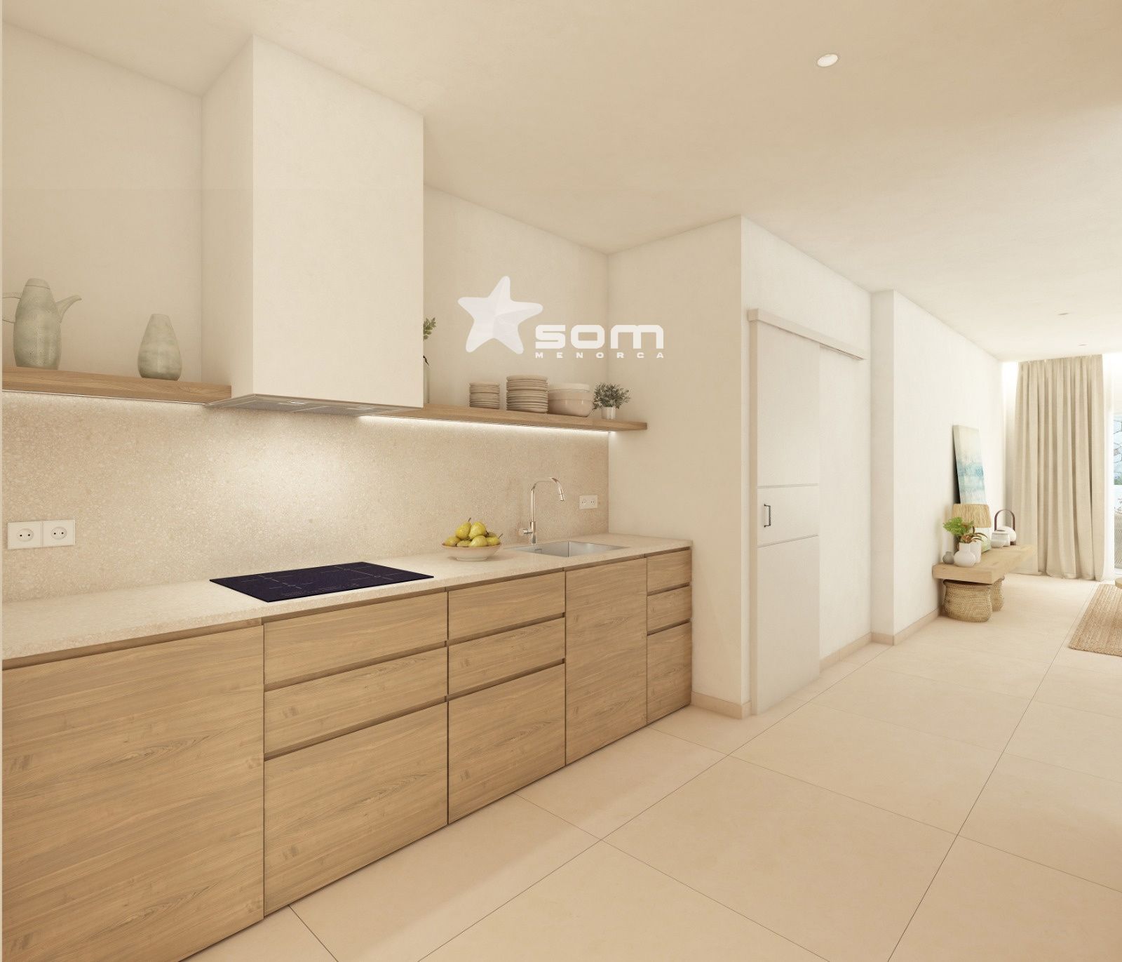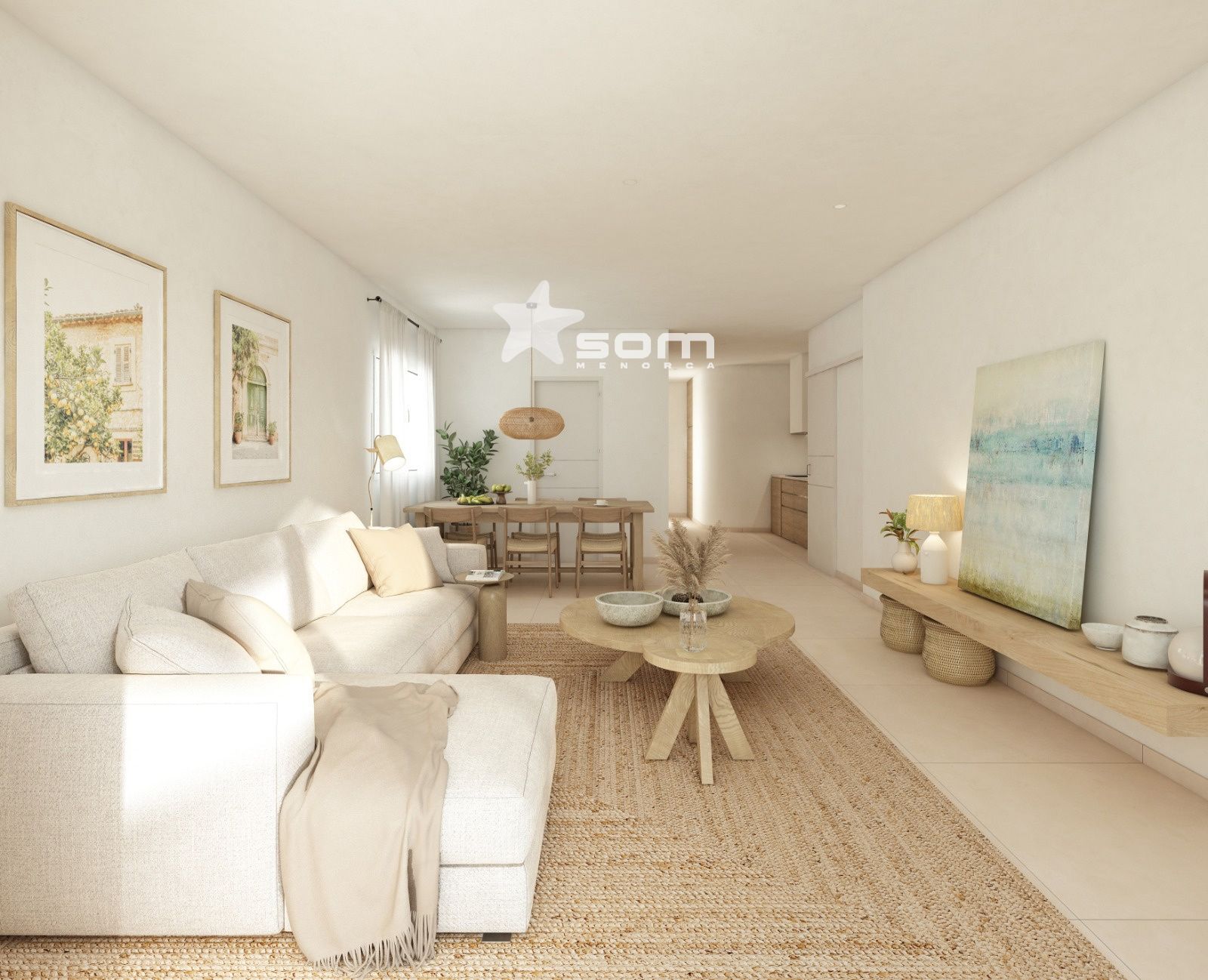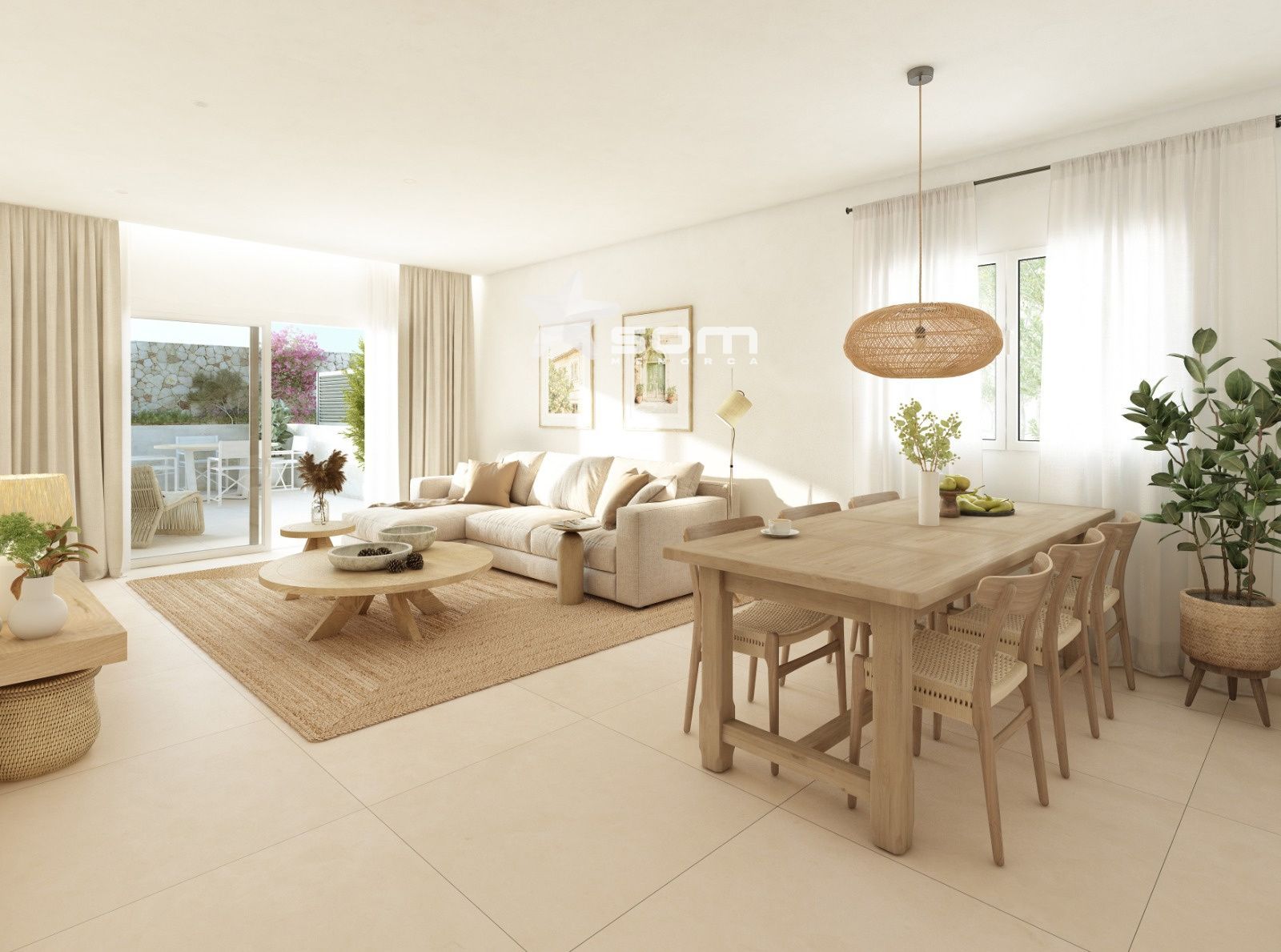 Amplio y luminoso apartamento en planta baja. Consta de un amplio salón comedor con cocina abierta totalmente amueblada y equipada y salida la gran terraza privada parcialmente cubierta, un dormitorio grande y otro pequeño ambos con armarios empotrados y un bañocompleto (uno en-suite). Climatización por aerotermia.