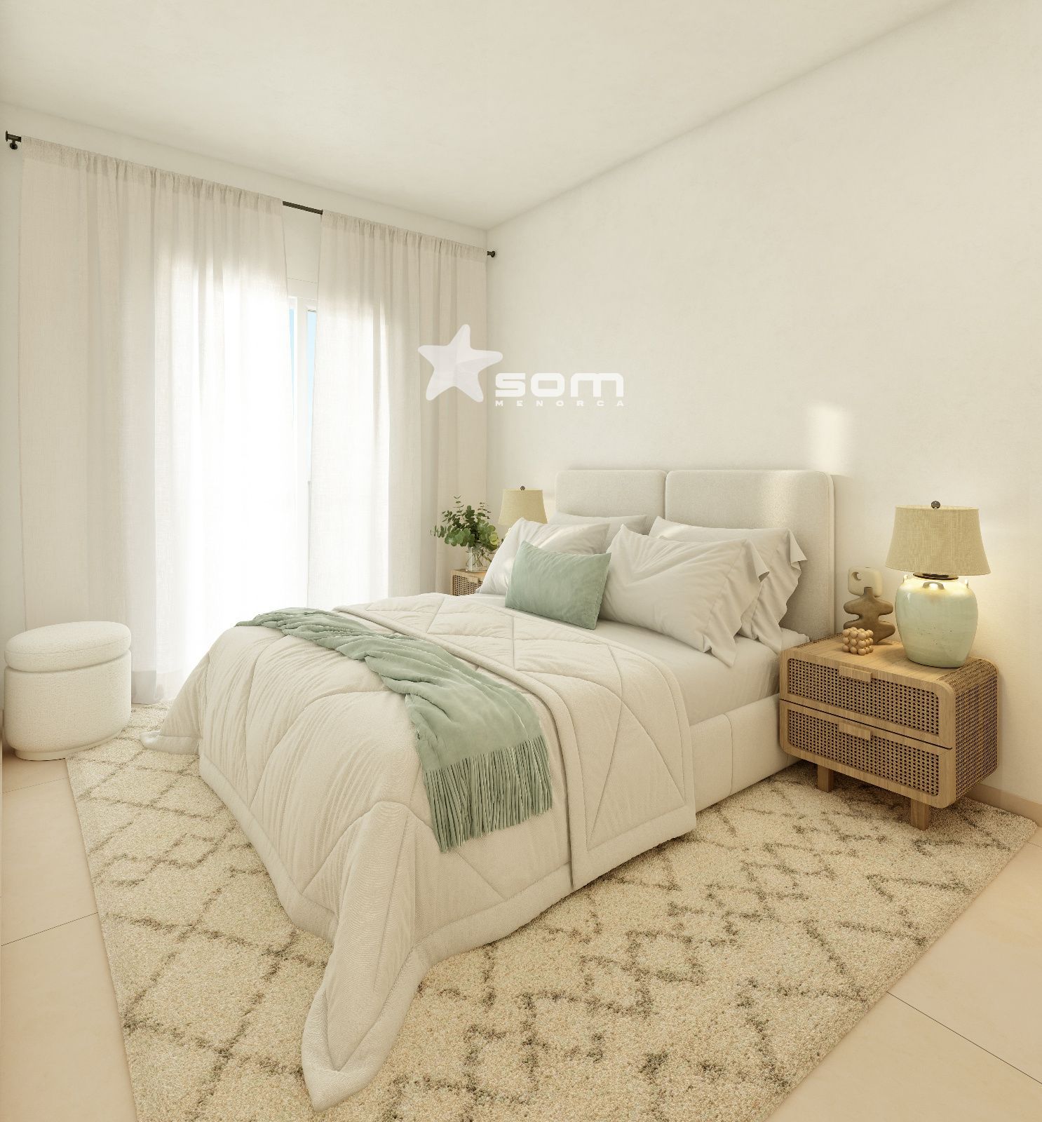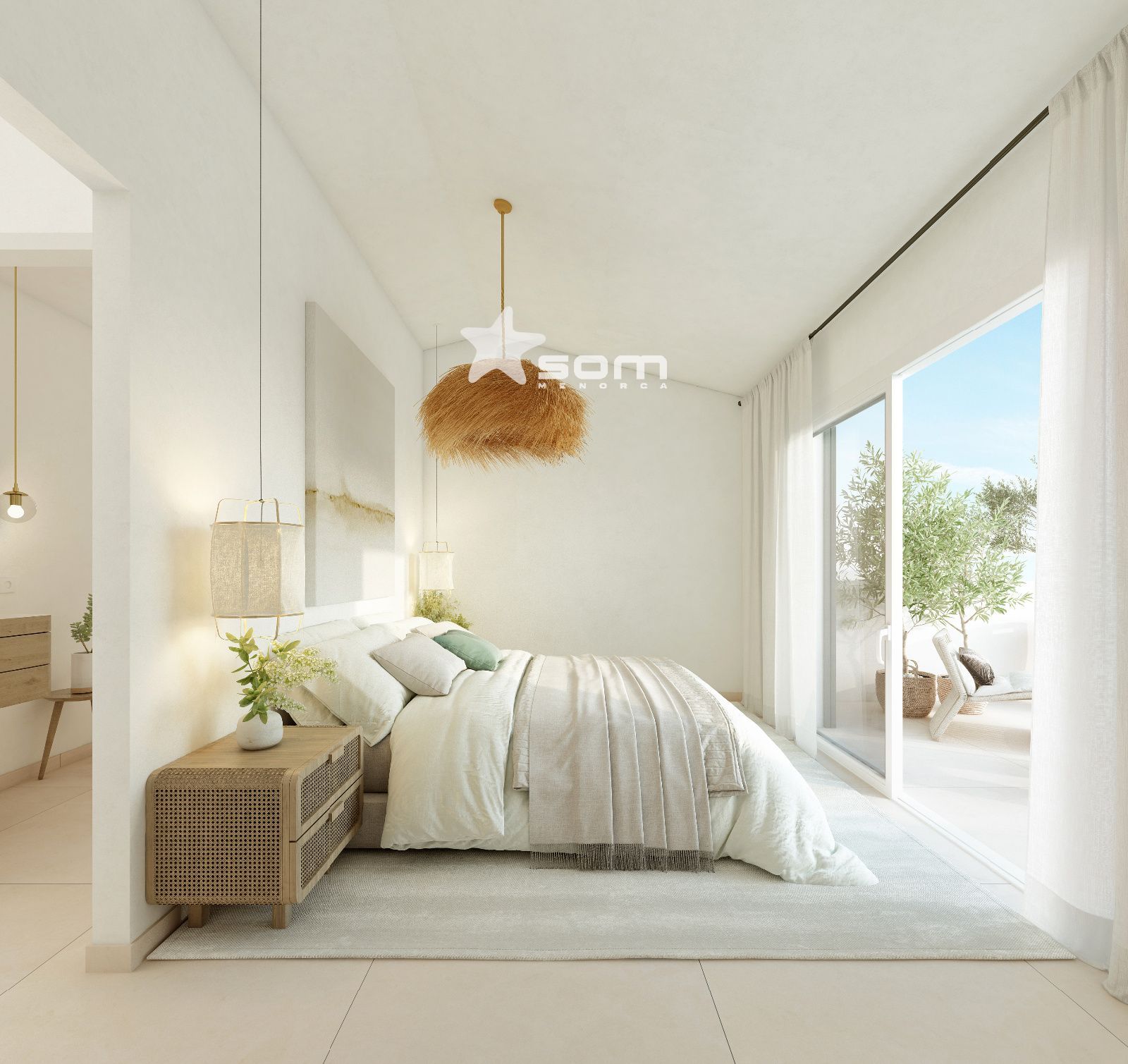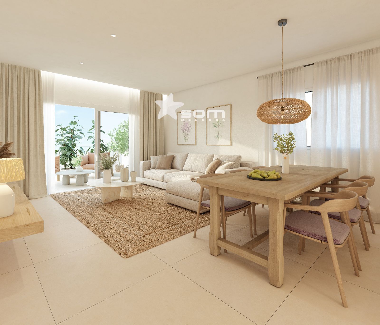 Gran apartamento tipo dúplex muy luminoso y con diversos espacios al aire libre. La planta principal consta de un amplio salón-comedor con cocina abierta totalmente amueblada y equipada y salida la terraza, dos grandes dormitorios con armarios empotrados y dos baños completos (uno en-suite). Climatización por aerotermia.